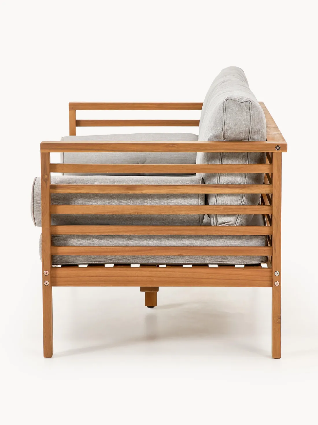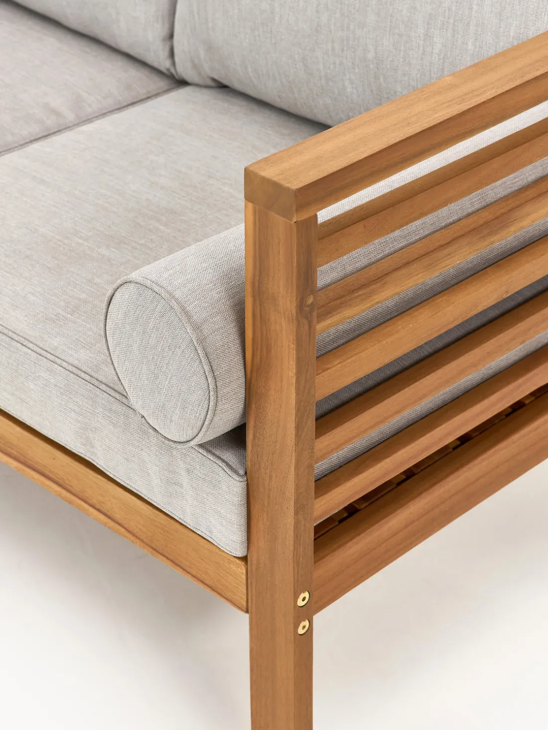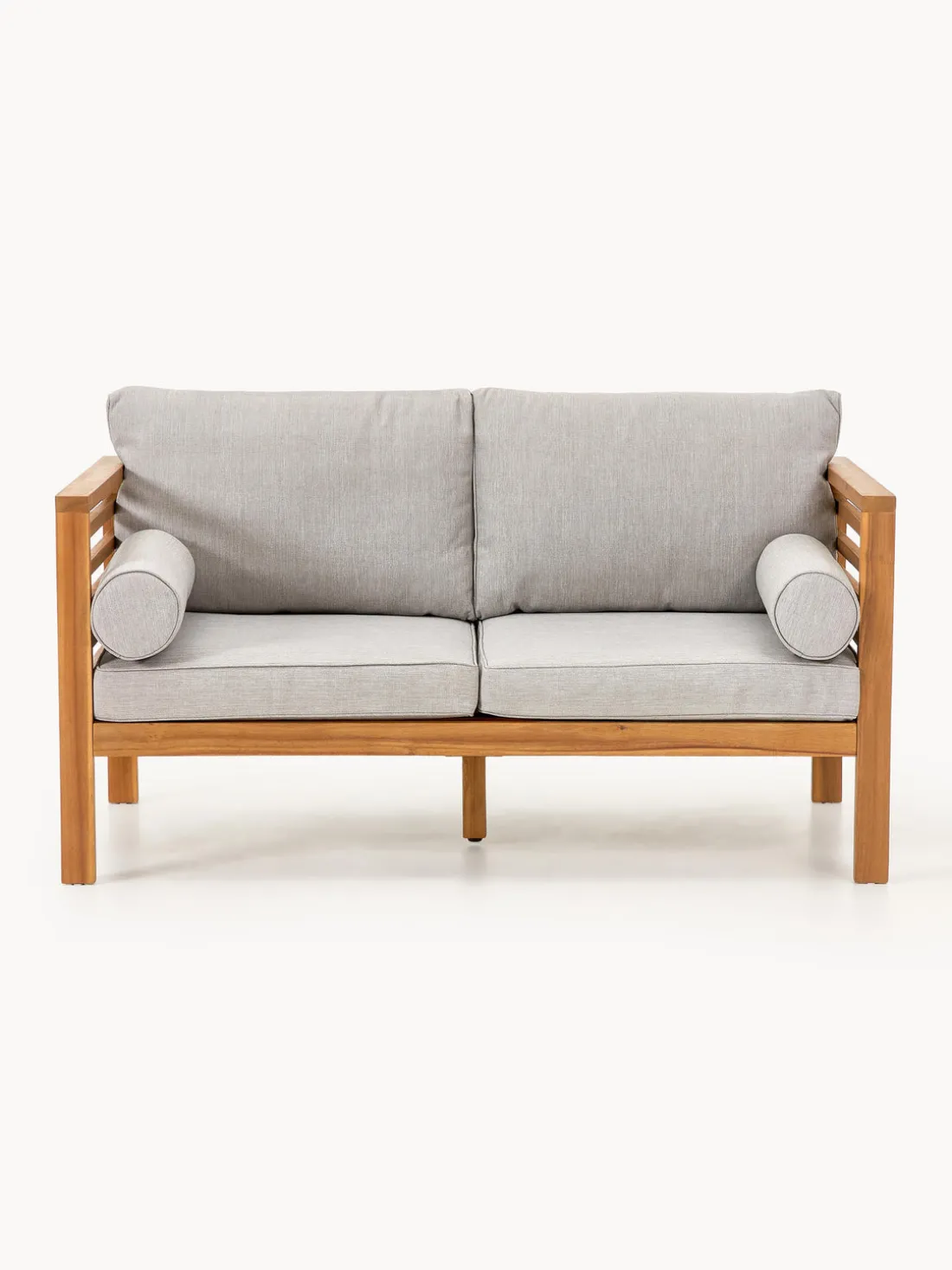 El robusto y duradero sofá de jardín está hecho de madera de acacia e impresiona por su resistencia a la intemperie.