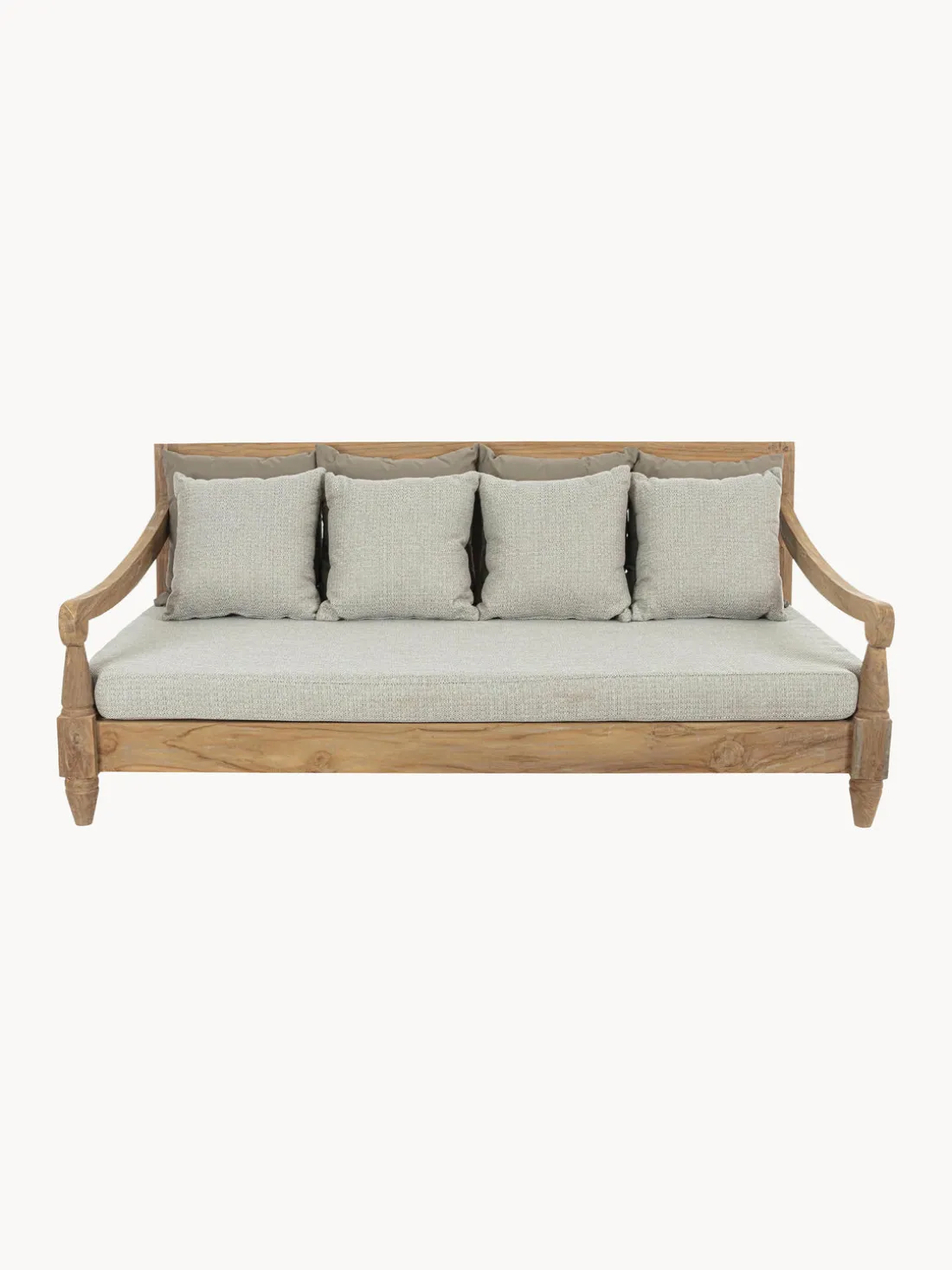 Si los muebles de madera de teca no se tratan, una película delgada de color gris plateado se puede formar con el tiempo en la superficie. Se recomienda frotar la madera con un estropajo áspero y agua tibia, al menos una vez al año. Si deseas mantener el color original de la madera de teca, se recomienda el uso de aceite de teca adecuado.