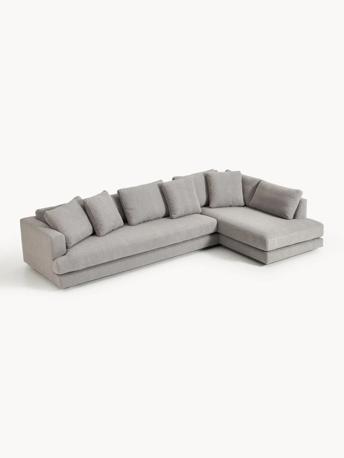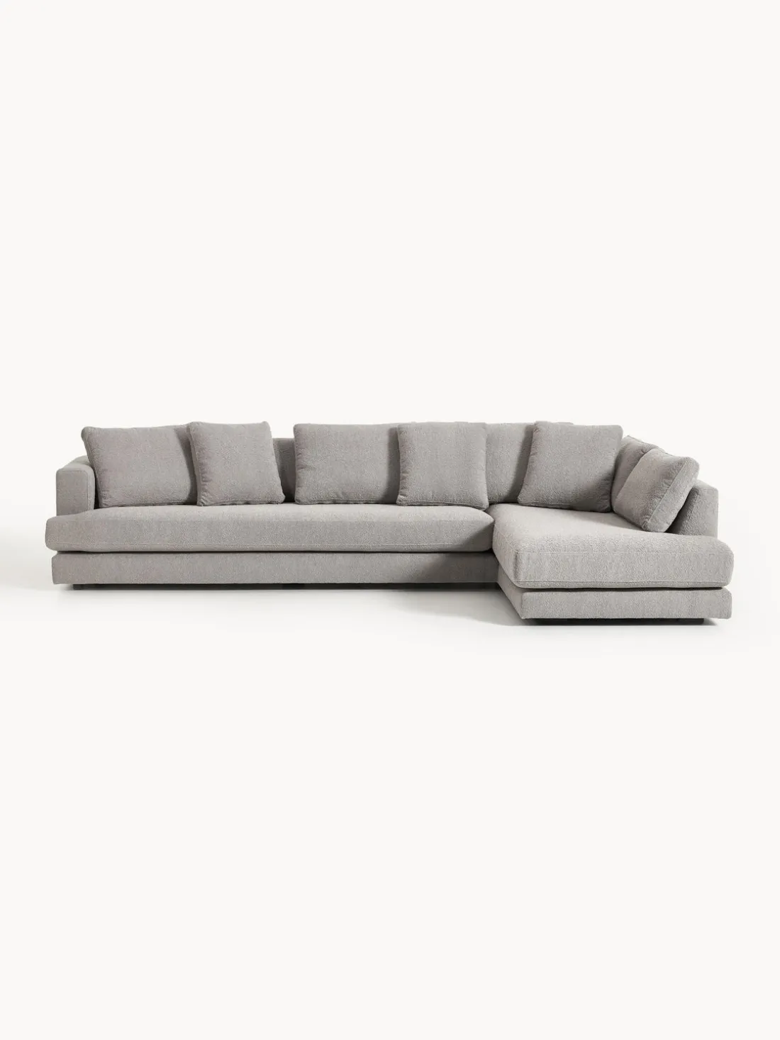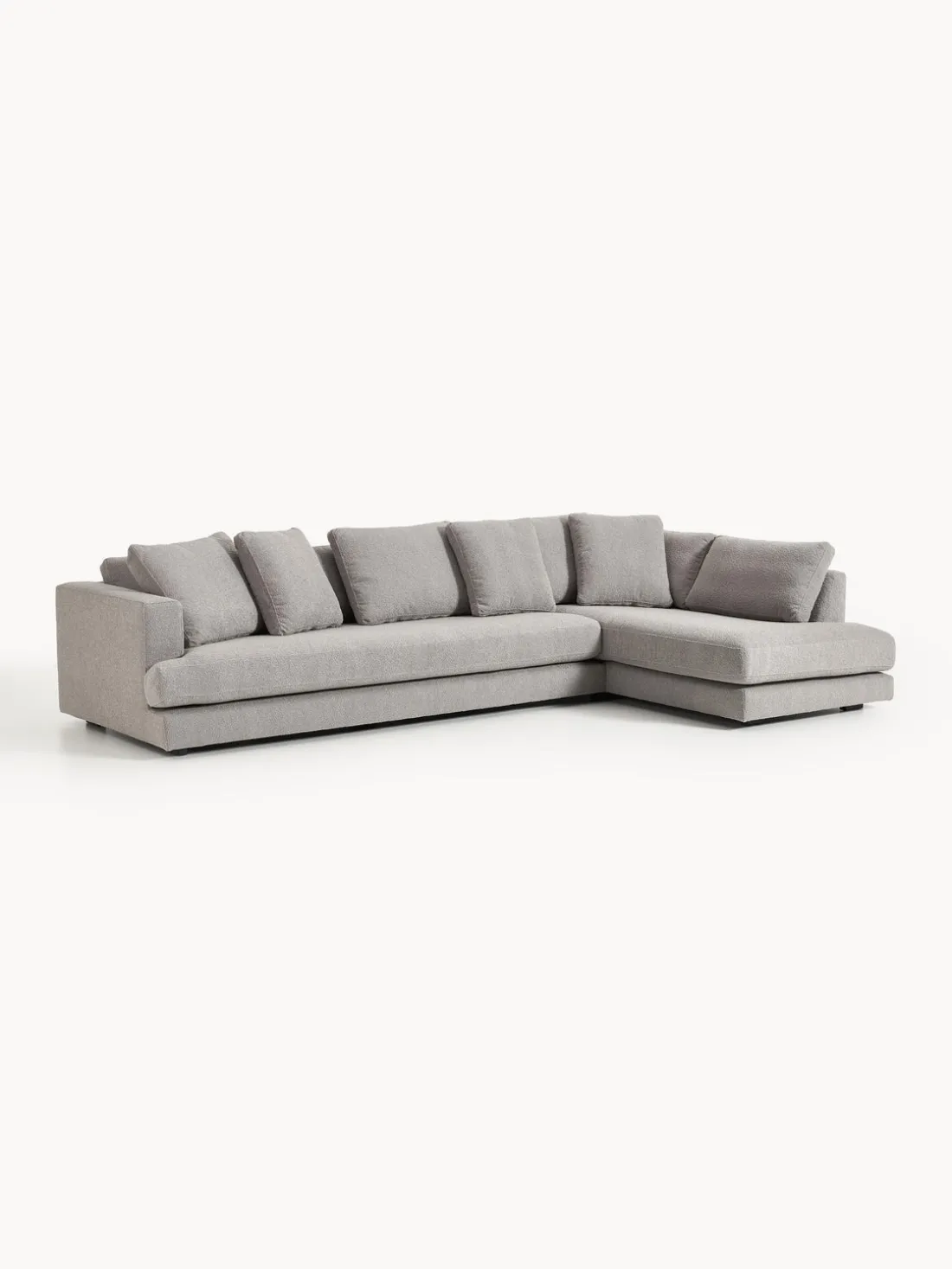 La chaise longue está en el lado derecho cuando estás frente al sofá.