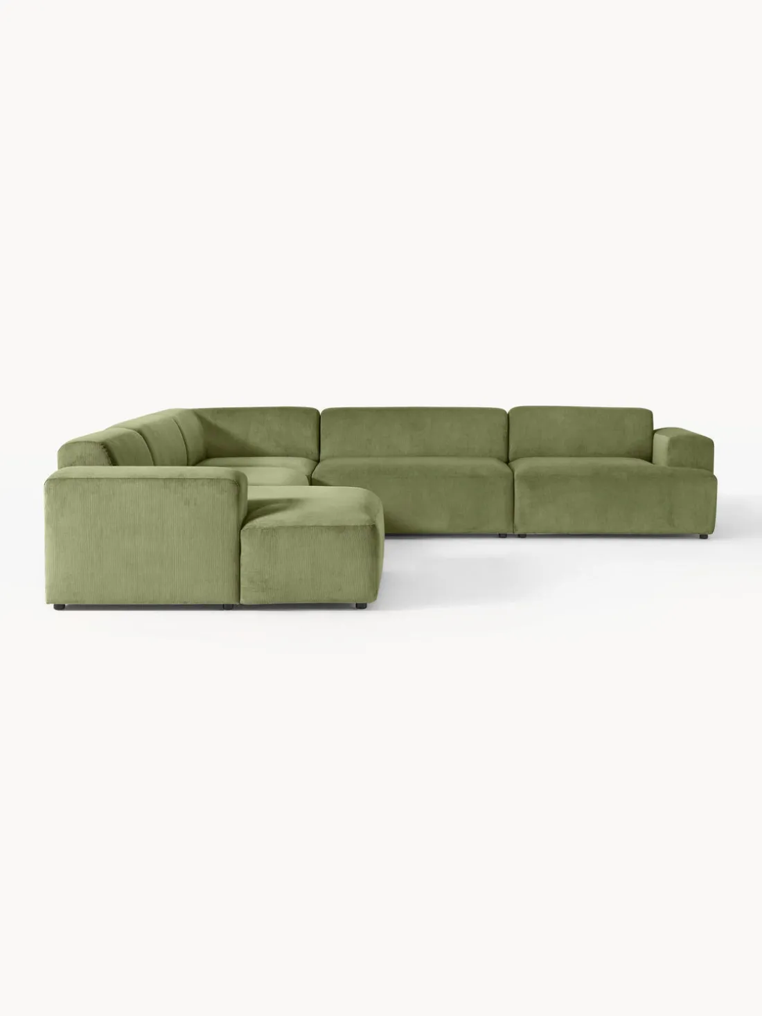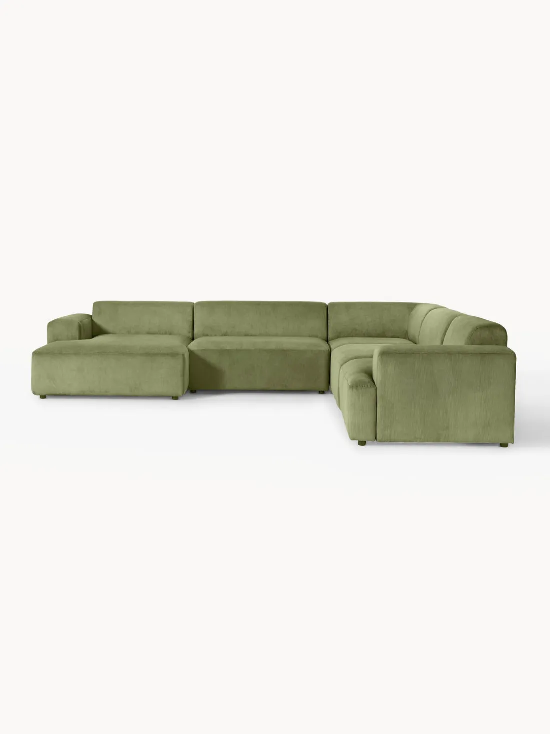 La chaise longue está en el lado derecho cuando estás frente al sofá.