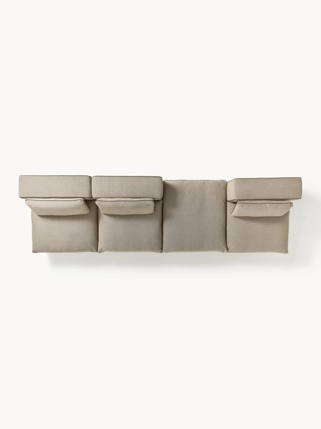 Nuestro sofá modular Felix consta de tres módulos y un reposapiés que pueden combinarse individualmente.