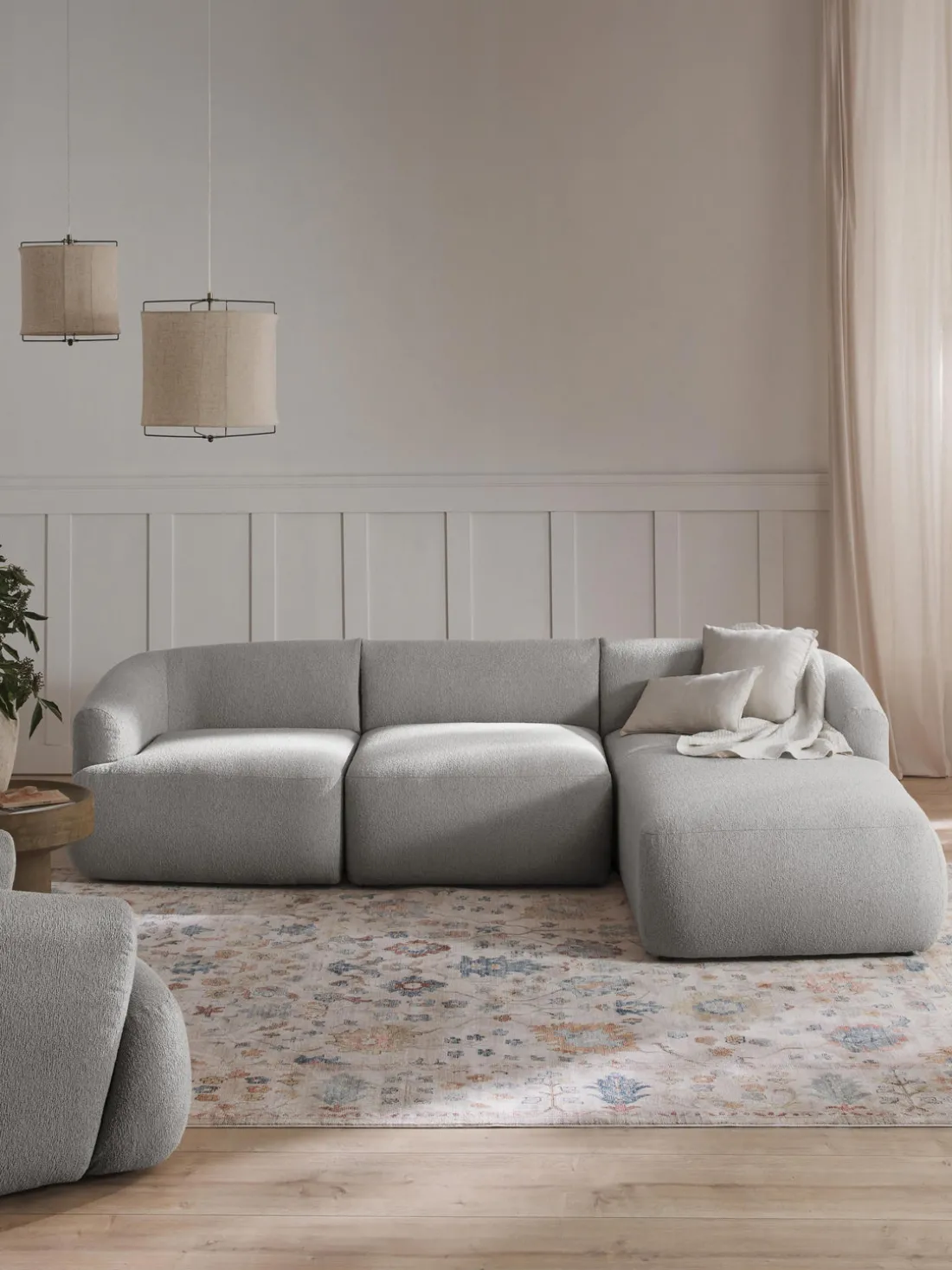 La chaise longue está al lado derecho cuando estás frente al sofá.