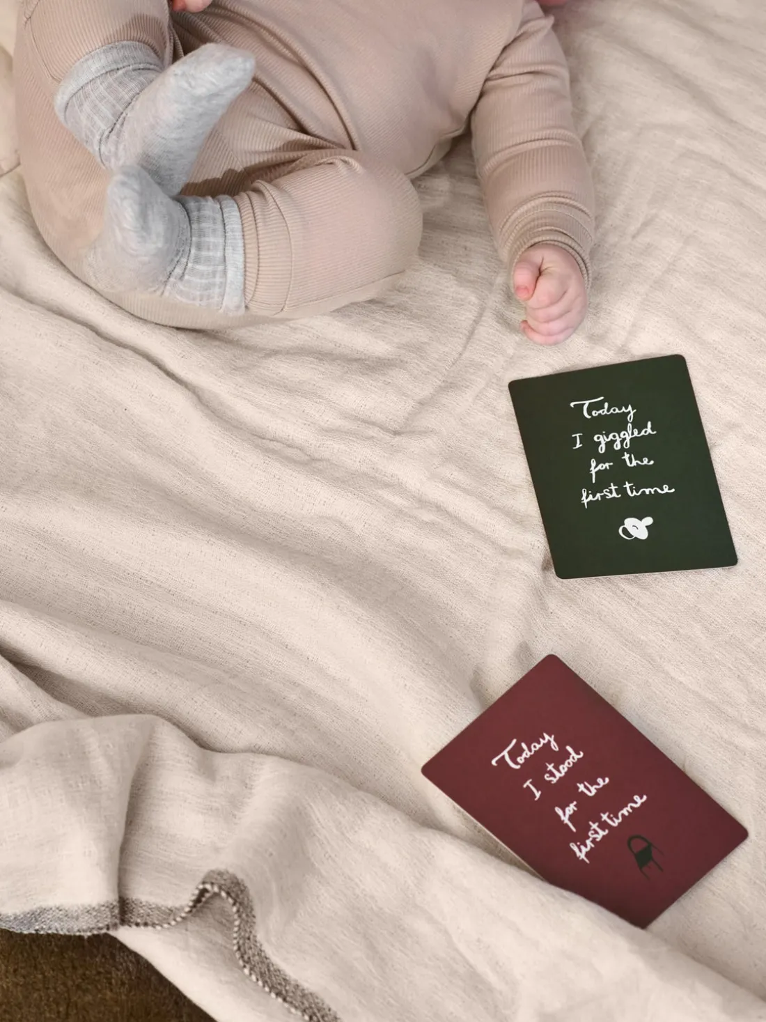 Las tarjetas de hitos ofrecen una manera encantadora e inolvidable de documentar el crecimiento de tu hijo. Estas tarjetas de elegante diseño con encantadoras ilustraciones y texto están hechas de papel certificado FSC® con un sofisticado acabado semimate. Captura cada evento importante con estas tarjetas de alta calidad y cree recuerdos duraderos del viaje mágico que tú y tu hijo experimentáis juntos. El juego viene en una bolsa de algodón para guardarlo fácilmente, de modo que puedas mantener estos preciosos recuerdos seguros y organizados.