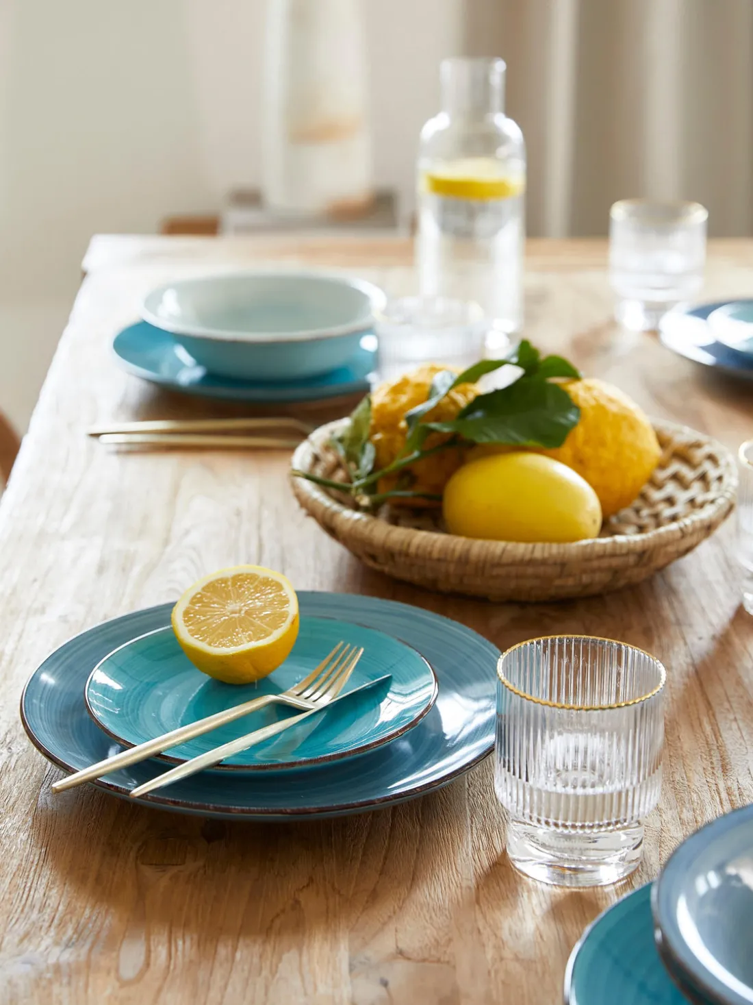 | Color | Tonos de azul, menta y turquesa |