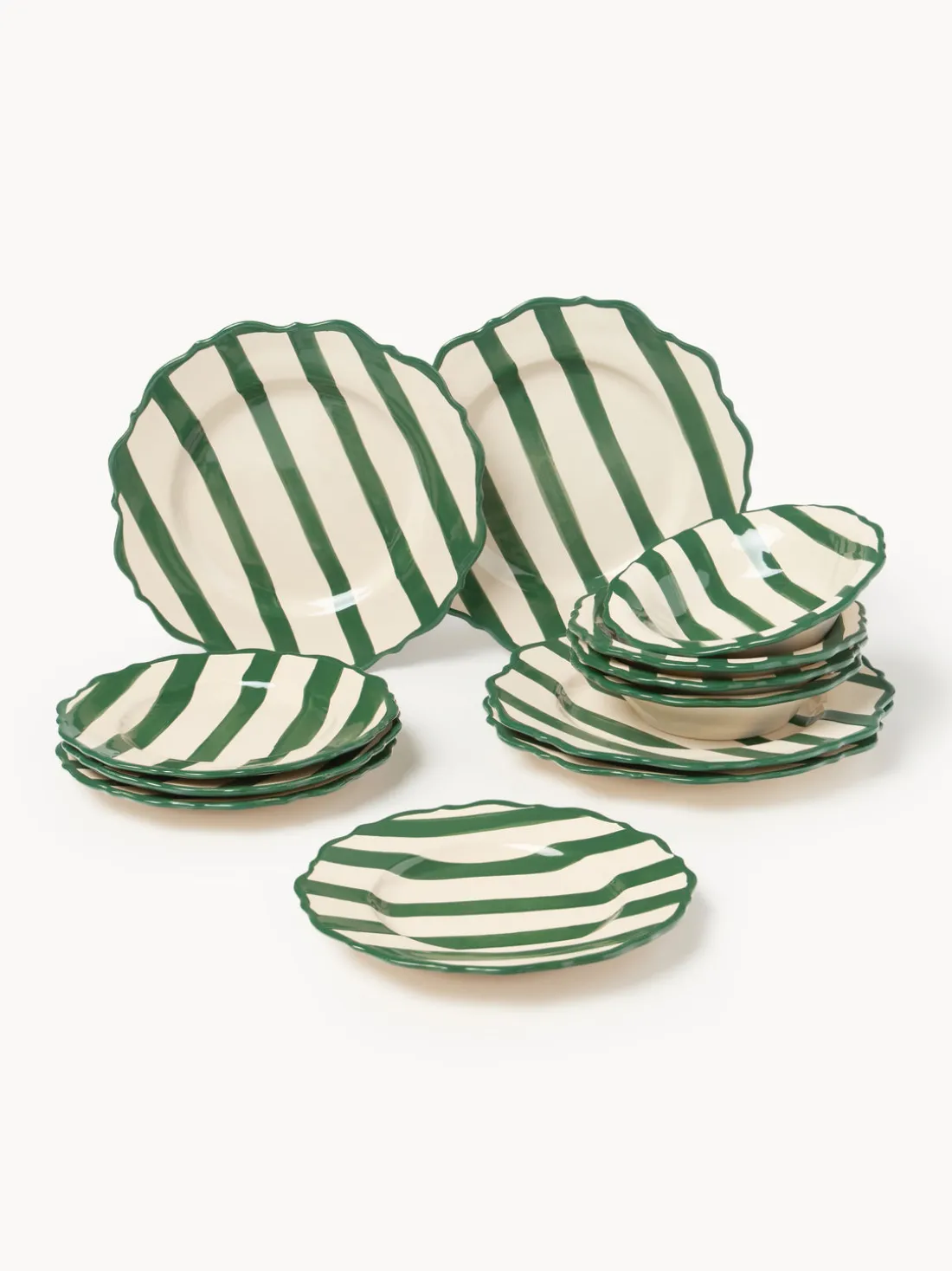 Vajilla de 12 piezas que consta de cuatro platos llanos, cuatro platos hondos y cuatro platos de postre.
