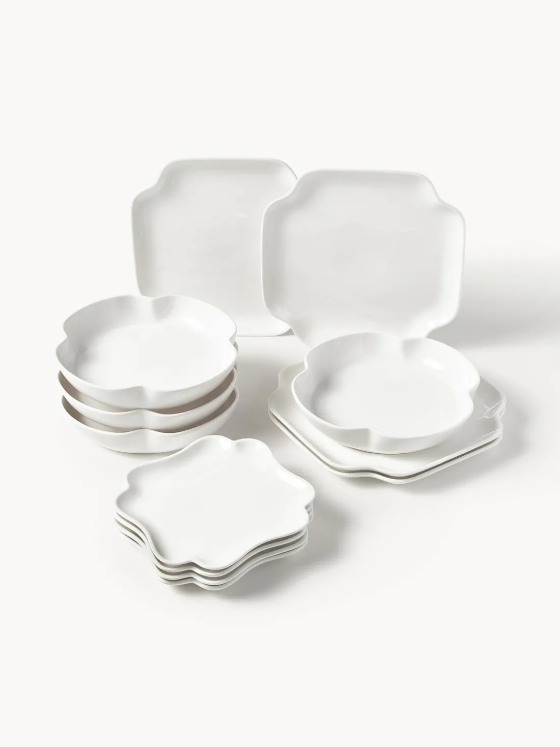 Esta vajilla de 12 piezas consta de 4 platos postre, 4 platos llanos y 4 platos hondos.